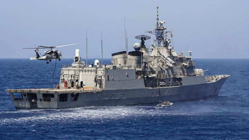 سفينة حربية يونانية خلال مناورة شرق المتوسط.