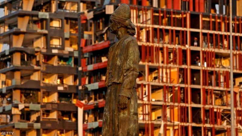 آثار الانفجار على تمثال في مرفأ بيروت.