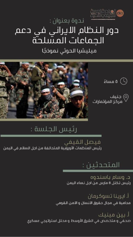 طالب حقوقيون وناشطون يمنيون بمزيد من العقوبات على نظام الملالي لتمويل المليشيات الإرهابية في المنطقة والعالم وارتكابه جرائم حرب ضد المدنيين، محذرين في ندوة حول «دور النظام الإيراني في دعم الجماعات المسلحة – مليشيا الحوثي نموذجاً» على هامش الدورة 45 لمجلس حقوق الإنسان في جنيف، من خطورة تحركات إيران.