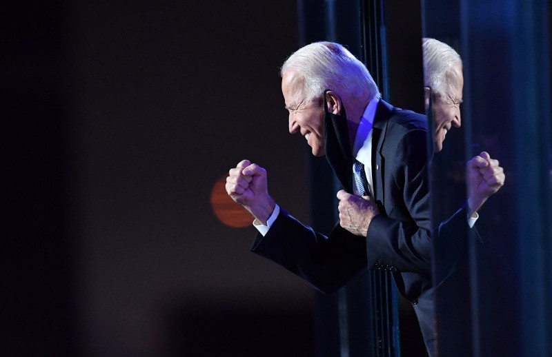 بايدن محتفلا بالنصر.
