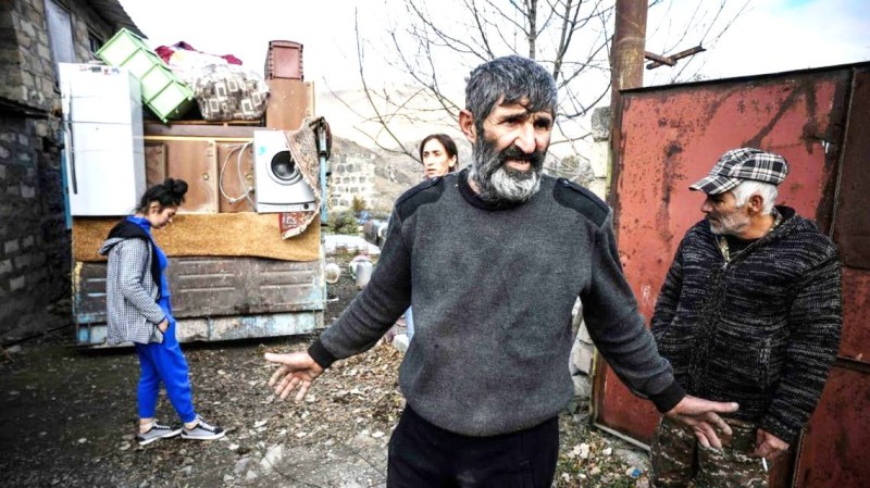 أسرة أرمنية تغادر منزلها قبل تسليمه إلى أذربيجان.