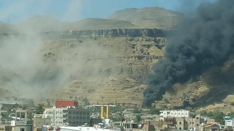 دخان يتصاعد من موقع حوثي قصفته قوات تحالف دعم الشرعية في صنعاء.