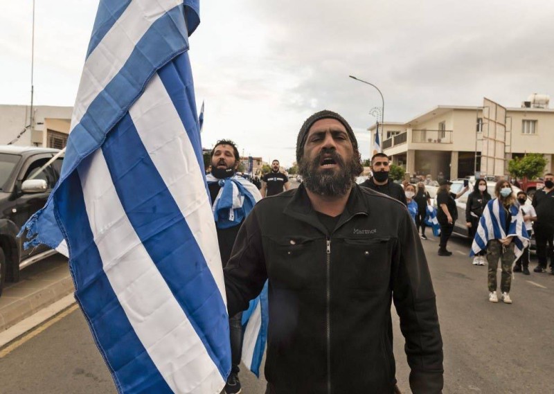 قبارصة يونانيون يتظاهرون ضد أردوغان.