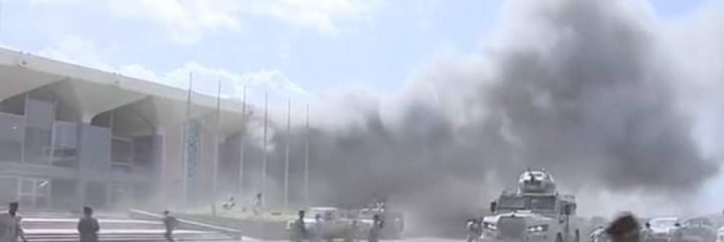 هز انفجار ضخم مطار عدن بالتزامن مع وصول الحكومة اليمنية الجديدة إلى عدن، اليوم (الأربعاء)، واستهدفت 3 انفجارات بقذائف هاون المطار. وقال شهود عيان إن الانفجار وقع داخل صالة مطار عدن قبل نزول الوزراء من الطائرة، مؤكدين وقوع عدد كبير من القتلى والجرحى، وأن الانفجار صاحبه إطلاق نار. ورجحت مصادر من داخل المطار احتمال أن يكون الهجوم نفذ عبر طائرات مسيرة. وأكدت أن أيا من أعضاء الحكومة لم يصب بأذى، وتم نقل رئيسها معين عبد الملك، وبقية الوزراء بسلام إلى القصر الرئاسي بالمدينة. إلا أنهت أشارت إلى وقوع عدد كبير من الإصابات والجرحى والقتلى في الهجوم المفاجئ.