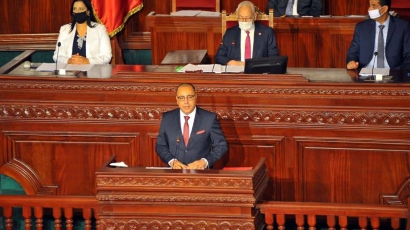 من جهته، دعا رئيس الوزراء هشام المشيشي، في كلمة أمام البرلمان خلال جلسة للتصويت على منح الثقة للتعديل الوزاري الواسع، إلى إصلاح الخلل في الحكومة، معتبرا أن تدارك الأزمة ممكن. فيما طوقت قوات الأمن محيط البرلمان لمنع مظاهرات مناوئة للحكومة وحركة النهضة. وطالب المشيشي بوقف الشعبوية واستبدالها بالمسؤولية، مؤكداً أنه لا مجال للاستسلام. واعترف بأن الأوضاع السياسية في تونس «مضطربة»، إلا أنه اعتبر «التحريض على التدمير واستعماله كوسيلة ضغط لا ينفع شيئا ويضر بالبلد».