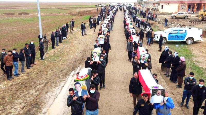 الإيزيديون يشيعون رفاة ذويهم.