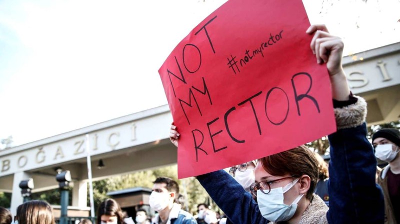 وقال الأكاديمي أستاذ علم الاجتماع في جامعة «بيلجي» فرهات كنطال: «أردوغان لا يرغب في إظهار علاماتٍ توحي بضعفه ولذلك عيّن عدداً من رؤساء الجامعات حديثاً للتأكيد على سلطته، مؤكداً أنه أصدر مرسوماً رئاسياً لتعيين 11 رئيساً لبعض جامعات البلاد ليوحي لأنصاره أن كل الأمور تحت السيطرة وأنه الوحيد الذي يتحكم بكل شيء كمرشدٍ أعلى». وأشار إلى أن «هذه التعيينات أغضبت الطلبة بالفعل، وهم سيواصلون مظاهراتهم، لكنني أخشى من قمعهم واستخدام العنف ضدهم، لإنهاء تحركهم الطلابي بشكلٍ جذري خصوصاً إذا لم يتلقوا دعماً من أكبر الشرائح المعارضة لرئيس النظام التركي». واعتقلت الشرطة التركية نحو 200 طالب في غضون احتجاجات جامعة البوسفور التي اندلعت على خلفية تعيين أردوغان أحد أعضاء حزبه السابقين رئيساً لها يوم 2 يناير الماضي. من جهة اخرى، فضحت المعارضة التركية انتهاكات حقوق الإنسان في عهد أردوغان، وكشفت عن وجود نحو 43 ألف انتهاك للحق في الحياة بدءاً من عام 2002 حتى عام 2020.