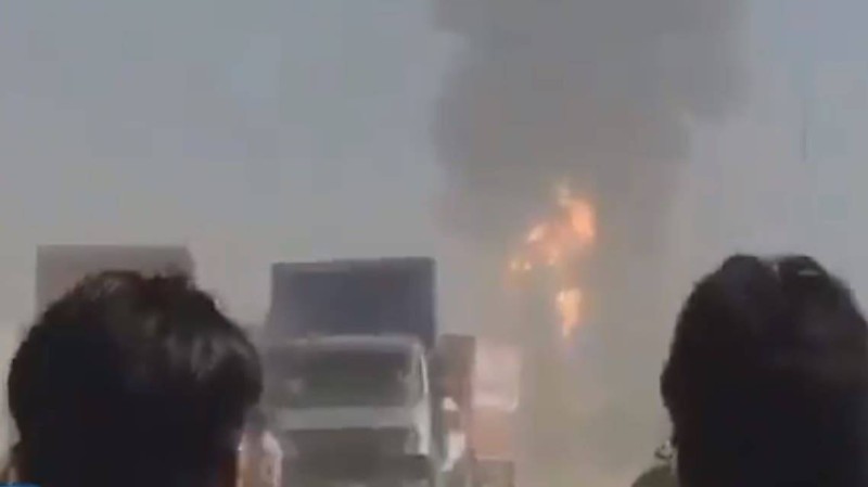 تسبب انفجار ضخم في صهريج للوقود في حرائق هائلة التهمت عشرات الشاحنات.