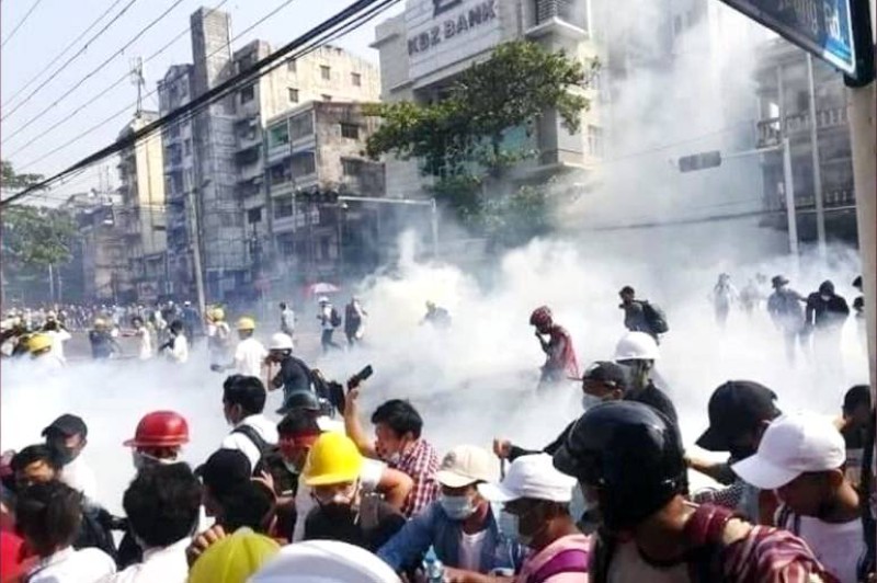انقلابيو ميانمار يواجهون المحتجين بالرصاص والغاز المسيل للدموع.