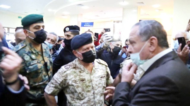 العاهل الأردني داخل مستشفى السلط أمس الأول.