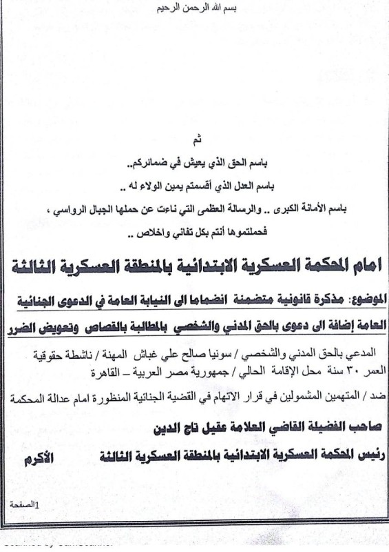 في أول شكوى من نوعها، كشفت المختطفة المحررة من سجون الحوثي سونيا صالح علي الغباش لـ«عكاظ» اليوم (الخميس) عن تقديمها دعوى إلى نيابة المحكمة العسكرية الابتدائية في المنطقة العسكرية الثالثة بمحافظة مأرب برئاسة القاضي عقيل تاج الدين والتي عقدت أمس (الأربعاء) جلستها العلنية الـ 14 لمحاكمة الإرهابي عبدالملك الحوثي و174 قيادياً مشمولين بالدعوى الجزائية ومتهمين بالانقلاب العسكري على النظام الجمهوري والسلطات الشرعية والدستورية والتخابر مع دولة أجنبية (إيران) وارتكاب جرائم عسكرية وجرائم حرب.