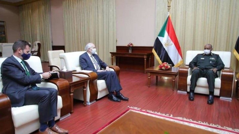 البرهان خلال لقائه المبعوثين الأمريكي والأوروبي في الخرطوم اليوم.