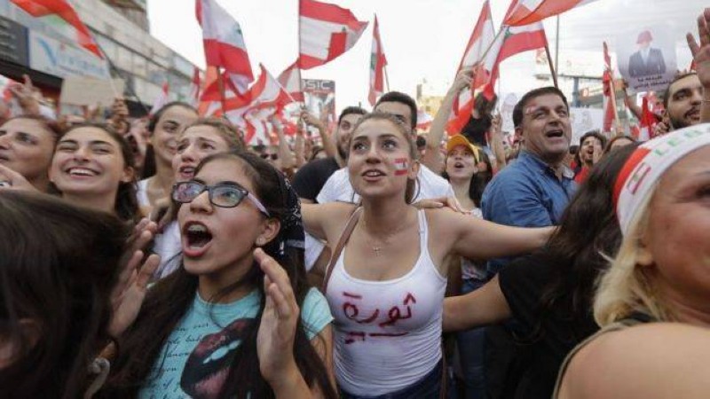 لبنانيون في احتجاجات سابقة.