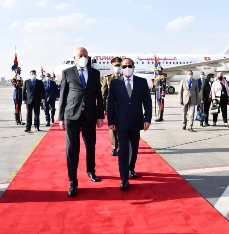 فيما استقبل الرئيس المصري عبدالفتاح السيسي بمطار القاهرة اليوم (الجمعة) نظيره التونسي قيس سعيد، الذي يحل ضيفاً على مصر في زيارة رسمية لمدة ثلاثة أيام، وقال المتحدث باسم الرئاسة المصرية السفير بسام راضي، إن الرئيسين سيعقدان لقاء قمة غداً (السبت) في قصر الاتحادية. وتركز القمة على عدد من القضايا الإقليمية والدولية ذات الاهتمام المتبادل، وسبل تعزيز العلاقات الثنائية والتعاون المشترك فى كل المجالات، خاصة على المستوى الأمني والاقتصادي والاستثماري.