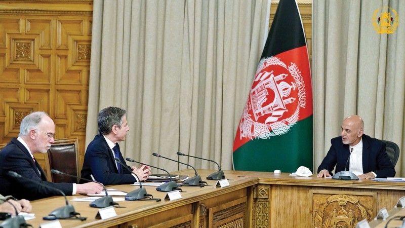 والتقى بلينكن الرئيس الأفغاني أشرف غني فضلا عن مسؤولين أمريكيين مقرهم في أفغانستان للبحث معهم في إعلان بايدن أن الوقت قد حان لوضع حد لأطول حرب خاضتها الولايات المتحدة في تاريخها بعد هجمات الحادي عشر من سبتمبر 2001.