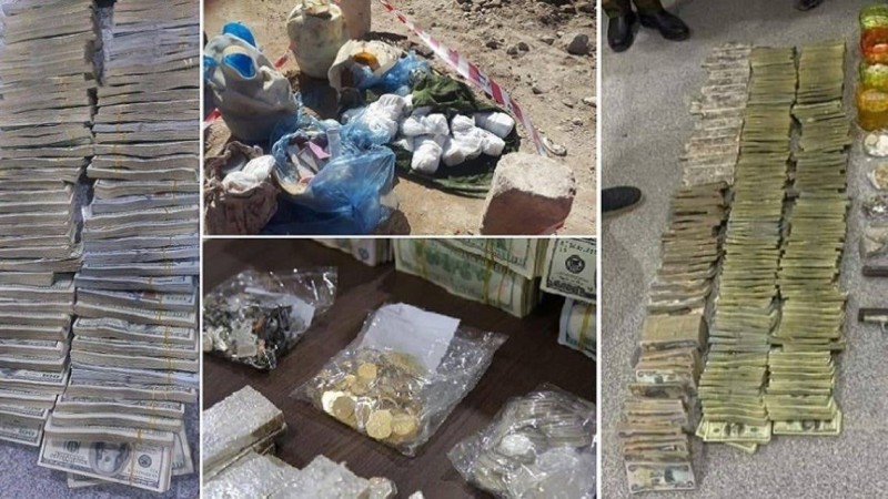 وكشفت المعلومات أن الكنز الذي عثر عليه يحتوي على نحو مليون و590 ألف دولار، ورزم من 17 مليوناً و500 ألف دينار عراقي، و17.5 كيلوغرام من سبائك فضة مقطعة لغرض طبع العملة المعدنية للتنظيم، و458 غراماً من قطع نقدية ذهبية داعشية، ومعها 256 غراماً من مواد معدنية مجهولة النوع.