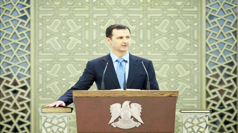 الأسد أثناء أداء اليمين في انتخابات 2014.