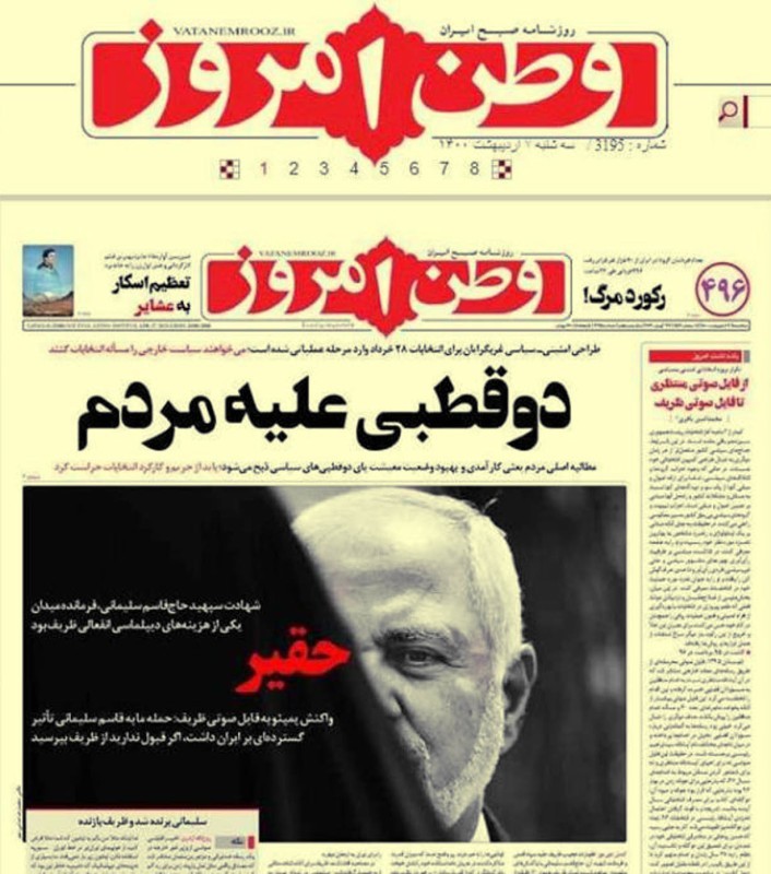 لا تزال تداعيات التسجيل المسرب لوزير خارجية الملالي تلقي بظلالها داخل أروقة النظام الإيراني، إذ طلب الرئيس الإيراني حسن روحاني أمس (الثلاثاء) التحقيق في نشر التسجيل الصوتي الذي أثار جدلا واسعا في البلاد. ووصف المتحدث باسم الحكومة علي ربيعي التسريب بـ«المؤامرة ضد الحكومة والنظام السياسي ونزاهة المؤسسات المحلية الفاعلة، كما أنه مؤامرة على مصالحنا الوطنية».وأثار التسجيل الممتد لنحو 3 ساعات جدلا في إيران، إذ يتحدث فيه ظريف عن قضايا عدة من أبرزها الدور الواسع لسليماني في السياسة الخارجية،. وكان المتحدث باسم الخارجية الإيرانية سعيد خطيب زاد أقر بصحة الفيديو. وهاجمت صحف إيرانية محافظة أمس ظريف ووصفته بـ«الحقير» إذ كتبت صحيفة «وطن امروز» المحافظة «يزعم ظريف أن إنجازات أو قدرات المفاوضات والدبلوماسية تم منحها إلى الميدان، علما بأنه يجدر بالدبلوماسية أن تتبع مسارا لزيادة قوة النظام السياسي لإيران»، فيما اعتبرت صحيفة «كيهان» ظريف مخطئاً بحق الثقة، مؤكدة أن ما نشر ليس جريمة صغيرة.