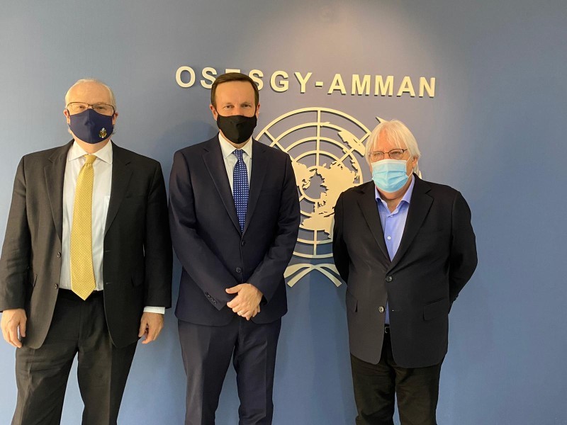 وكان غريفيث عقد اجتماعا مع المبعوث الأمريكي تيم لاندركينغ في مسقط وناقش معه الوضع في مأرب وتحديات السلام. وكتب حسابه في «تويتر» «سرّني اللقاء بالسيناتور كريس ميرفي والمبعوث الأمريكي الى اليمن تيم لاندركينغ في عمان، وناقشنا الوضع في مأرب وآفاق التوصّل إلى اتفاق حول الموانئ والمطار، ووقف إطلاق نار واستئناف العملية السياسية في اليمن».