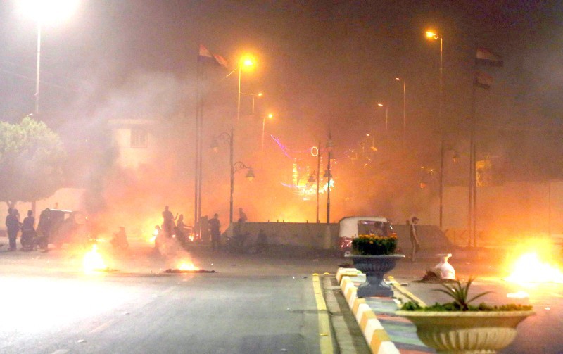 المحتجون أحرقوا مقطورات خارج القنصلية الإيرانية في كربلاء.