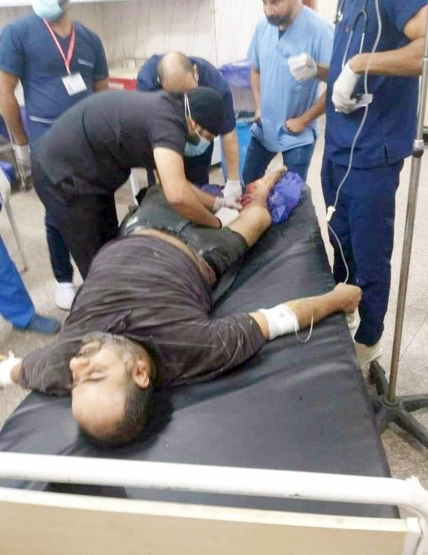 العكيلي يتلقى العلاج بعد إصابته في انفجار عبوة ناسفة بالبصرة.