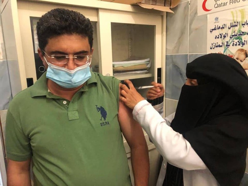 إعلامي يمني من صنعاء يتلقى اللقاح في تعز.