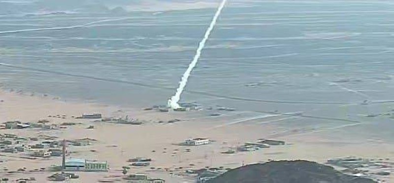 الصاروخ الذي أطلق من وسط قرى مديرية صرواح غرب مأرب.