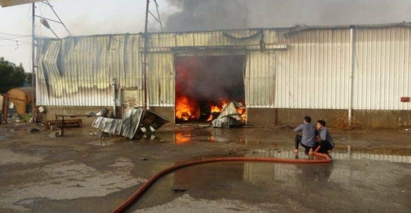 أحد مخازن مجمع "إخوان ثابت" الذي أحرقته المليشيا في الحديدة