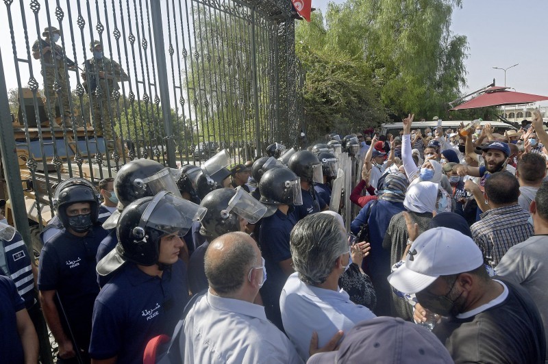 ورشق تونسيون بعضهم بعضا بالحجارة خارج مبنى البرلمان، حيث تجمّع عدة مئات من الناس.