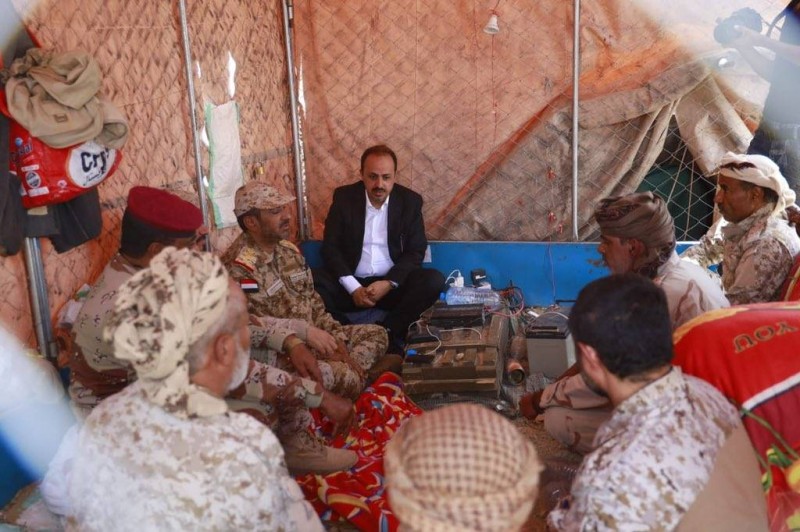 جاء ذلك خلال زيارته الخطوط الأمامية لجبهة حويشان بالمنطقة العسكرية السادسة في محافظة الجوف اليمنية، برفقة رئيس هيئة الأركان العامة بالقوات المسلحة اليمنية قائد العمليات المشتركة الفريق الركن صغير بن عزير.