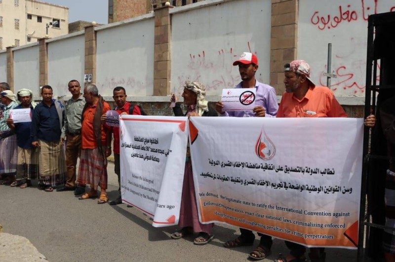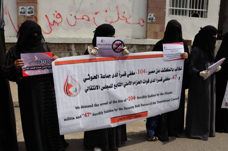 ودعت خلال وقفة احتجاجية اليوم (الإثنين) أمام مبنى محافظة تعز تزامنا مع اليوم العالمي للإخفاء القسري 30 أغسطس، الأمم المتحدة إلى تفعيل وكالاتها ومنظمات المجتمع المدني المعنية لتقديم الدعم النفسي اللازم لضحايا الإخفاء القسري وعائلاتهم. وطالبت الأمهات مجلس الأمن الدولي باتخاذ إجراءات وعقوبات صارمة تحاسب مرتكبي جريمة الإخفاء القسري في اليمن. وكشفت الرابطة أن هناك 40 مدنياً مخفياً توفوا تحت التعذيب في سجون المليشيا، مؤكدة أنها وثقت وجود 104 مدنيين مخفيين قسرا في سجون الحوثي.
