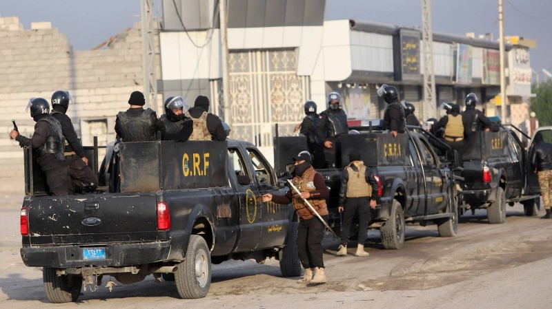 Iraqi security forces are seen on military vehicles during ongoing anti-government protests in Basra, Iraq November 24, 2019. REUTERS/Essam al-Sudani