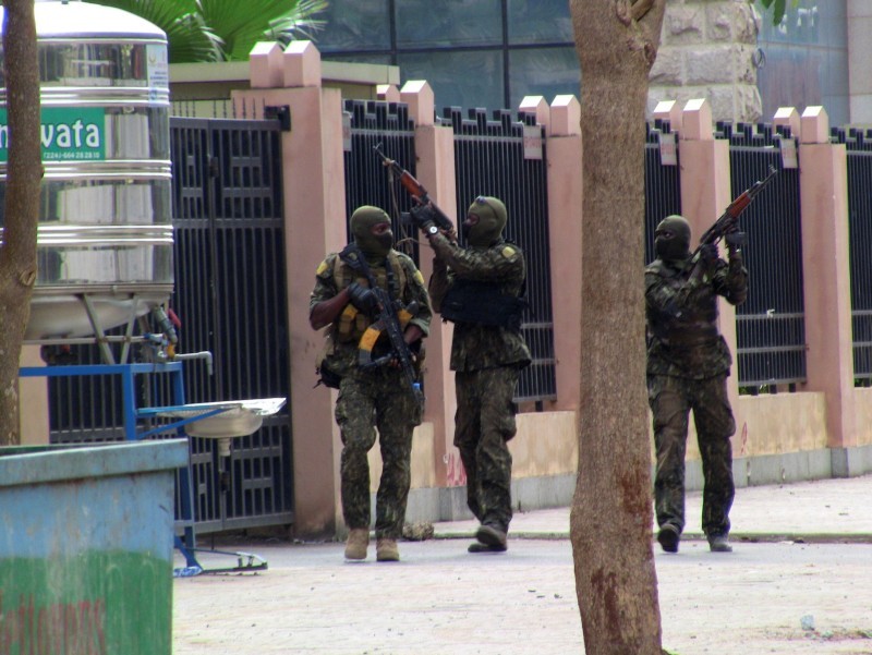 وقال قائد القوات الخاصة اللفتانت كولونيل مامادي دومبويا، وهو الى جانب الانقلابيين الذين كانوا يرتدون بزات عسكرية ويحملون السلاح «قررنا بعد القبض على الرئيس الذي بات حاليا في أيدينا، حل الدستور الساري وحل المؤسسات وقررنا أيضا حل الحكومة وإغلاق الحدود البرية والجوية».
