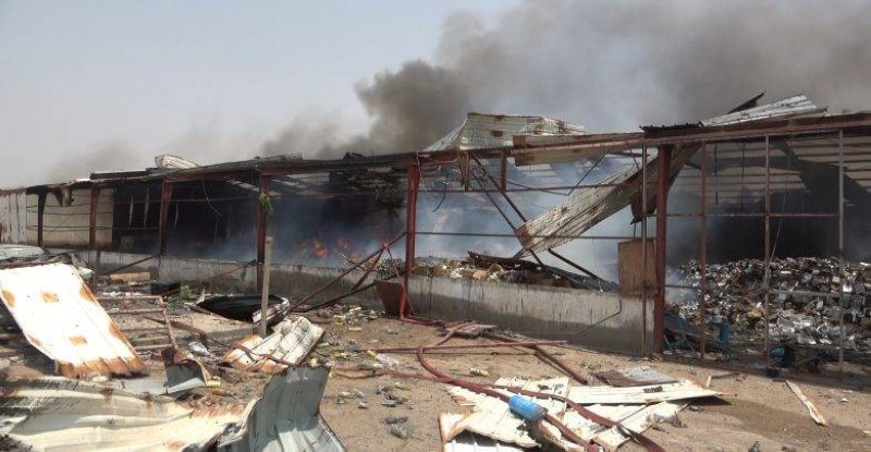 أضرار لحقت بمخزن الإغاثة الإنسانية