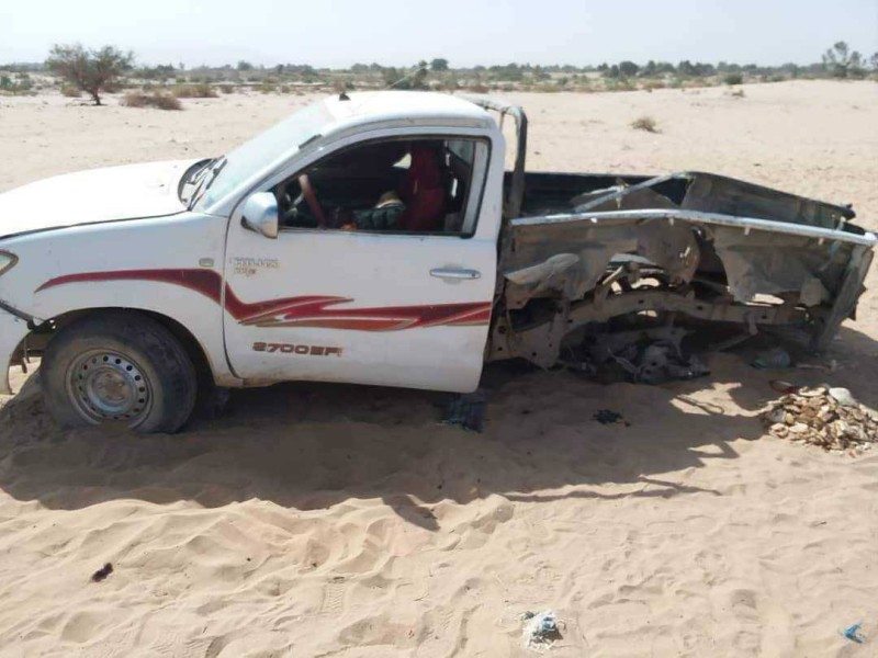 سيارة دمرتها الألغام الحوثية في الجوف.