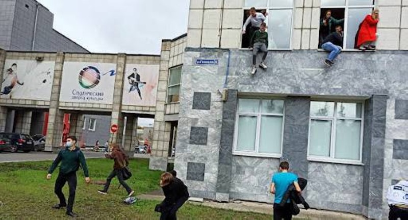 وقال متحدث باسم الشرطة: «إنه تم اعتقال المسلح بعد قليل من الحادثة التي الواقعة على بعد نحو 1300 كيلومتر إلى الشرق من موسكو، فيما أظهرت لقطات فيديو نشرتها وسائل إعلام محلية طلابا يقفزون من نوافذ الطابق الأول للفرار من البناية».
