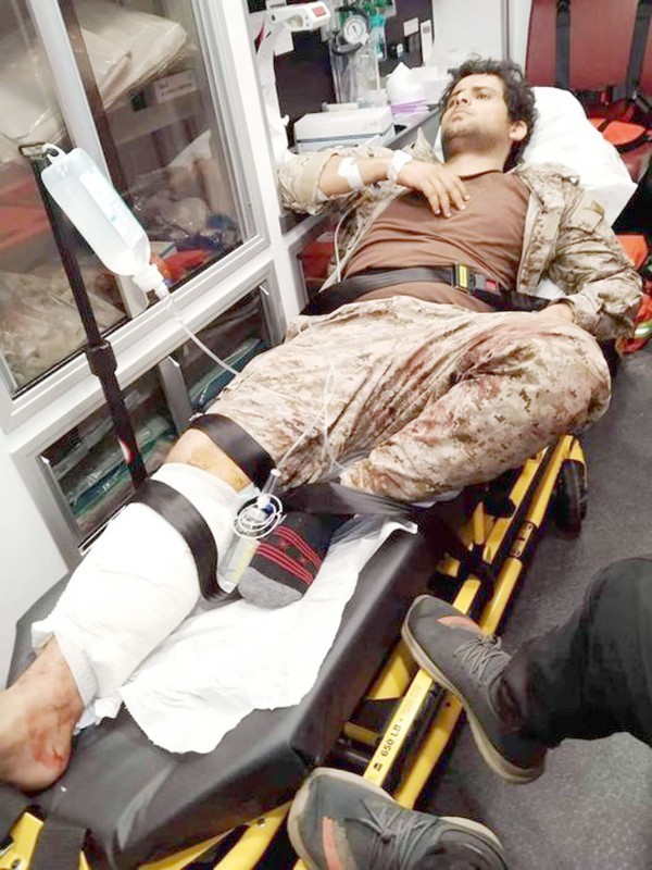 أحد المصابين في قصف الحوثي لحفل إيقاد شعلة 26 سبتمبر. (متداولة)