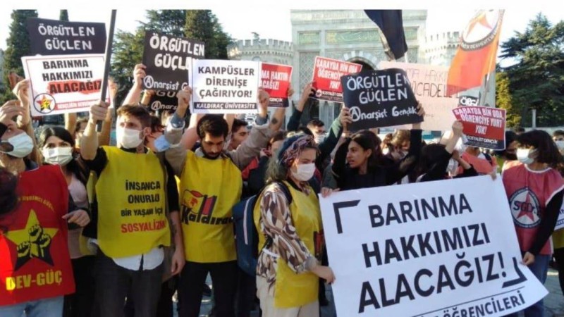 بشكل يومي يتظاهر آلاف الطلبة في عدد من الجامعات التركية بينها إسطنبول وإزمير احتجاجا على ارتفاع إيجارات المنازل في المدن التي انتقلوا إليها بهدف الدراسة، إذ بلغت زيادة الإيجارات في بعض المناطق نحو 60%.