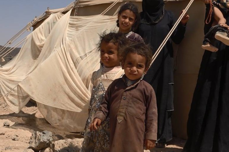 أطفال يمنيون نازحون في أحد المخيمات بمأرب.