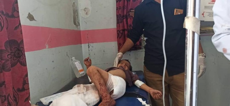 أحد الأطفال من ضحايا القصف الصاروخي الحوثي.
