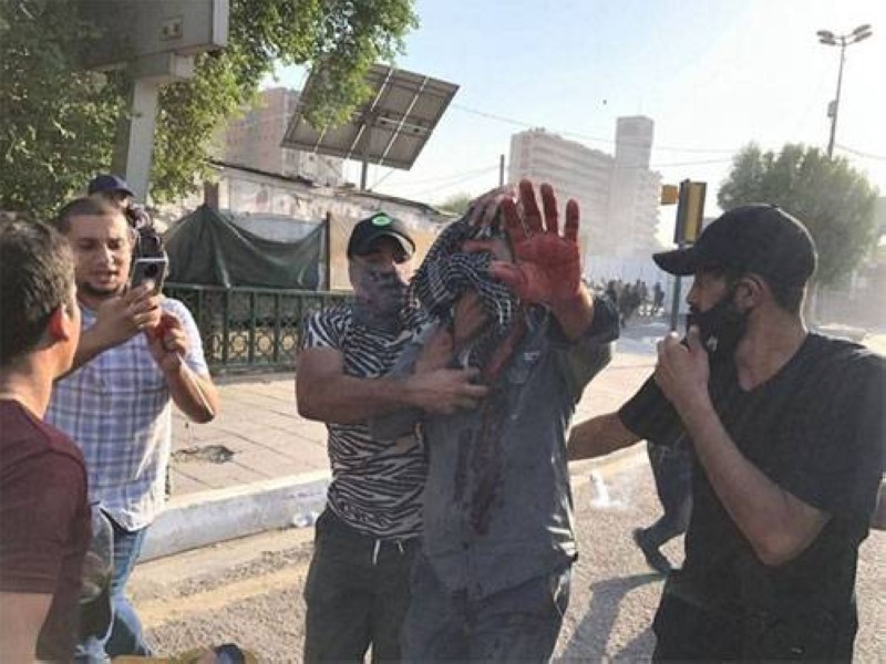 مظاهرات أمام البوابة الخضراء في العراق.