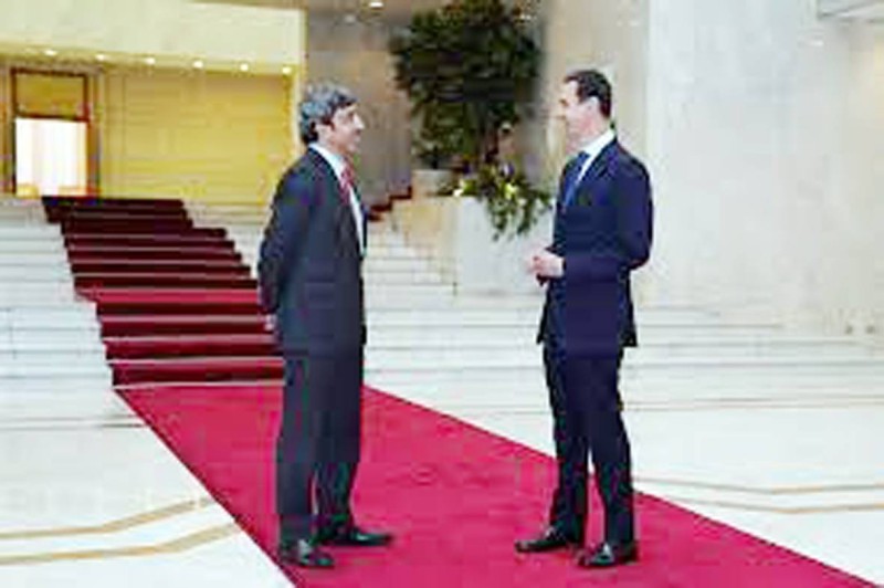 عبدالله بن زايد ملتقيا بشار الأسد في دمشق.