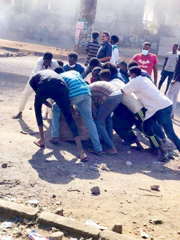 متظاهرون سودانيون يغلقون الشوارع في الخرطوم. (متداولة)