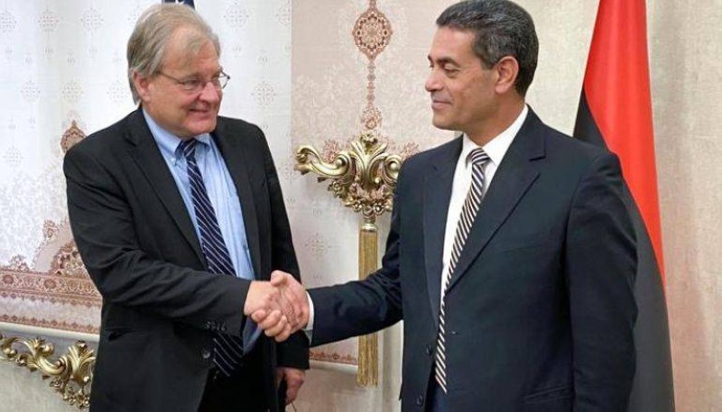 السفير الأمريكي نورلاند ملتقيا رئيس مفوضية الانتخابات الليبيبة السايح.