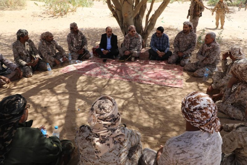 كما قام الوزيران، بزيارة للخطوط الأمامية والتقيا قادة الوحدات والقيادات الميدانية معبرين عن الفخر والاعتزاز العالي بالبطولات الوطنية النادرة التي يخلدها المقاتلون دفاعاً عن مبادئ واهداف الثورة والجمهورية والمكتسبات والثوابت الوطنية، ناقلين للقادة والضباط والصف والجنود تحايا القيادة السياسية والعسكرية بقيادة الرئيس المشير الركن عبدربه منصور هادي رئيس الجمهورية القائد الاعلى للقوات المسلحة، ونائبه الفريق علي محسن صالح.