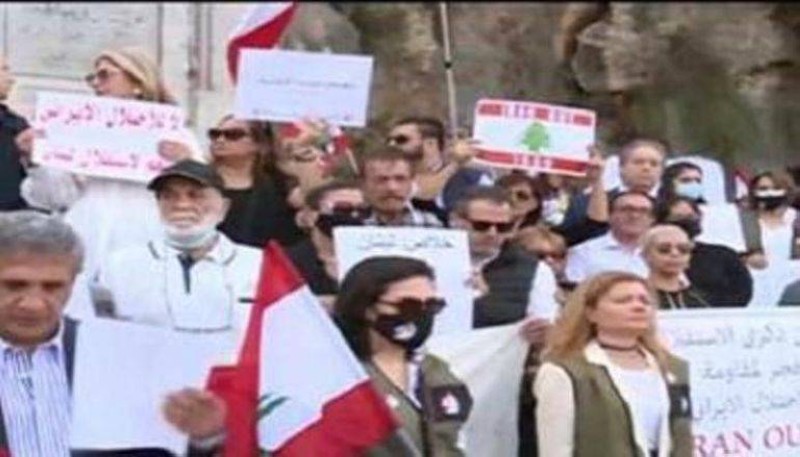 لبنانيون مشاركون في وقفة احتجاجية ضد الاحتلال الإيراني.
