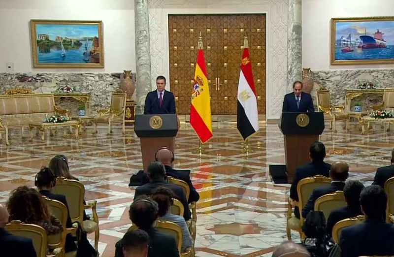 السيسي ورئيس وزراء إسبانيا خلال مؤتمر صحفي في القاهرة.