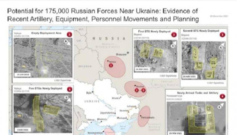 وكانت تقييمات أوكرانية أفادت بأن روسيا لديها حوالى 94 ألف جندي قرب الحدود، تقدر الخريطة الأمريكية العدد بـ70 ألفاً لكنها تتوقع ارتفاعه إلى 175 ألفاً.