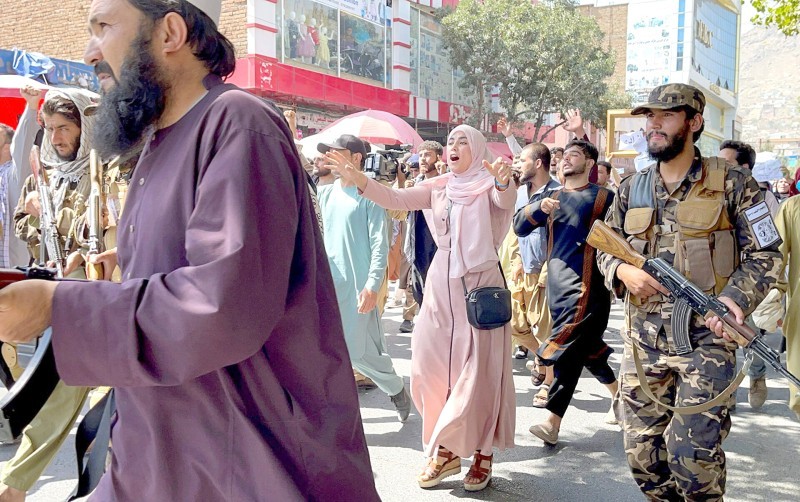 مظاهرات في كابول تحت حراسة حركة طالبان.