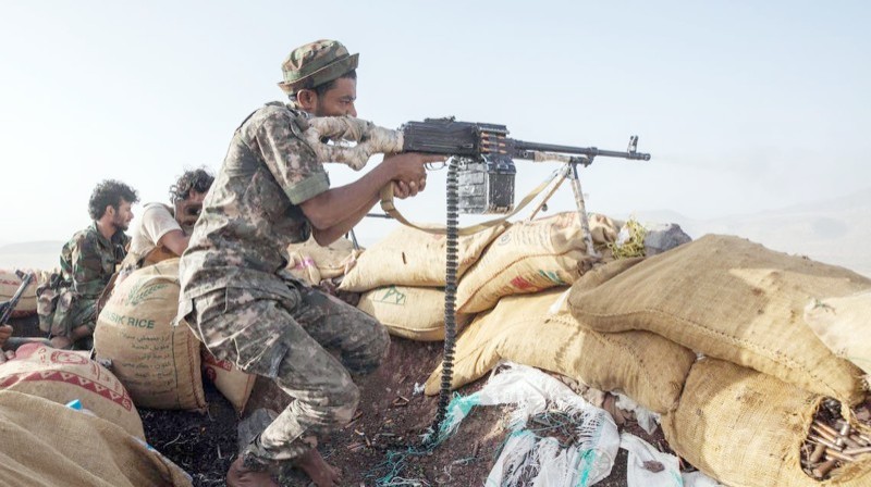 قيادات الجيش الوطني أثناء المواجهات مع المليشيا الحوثية.